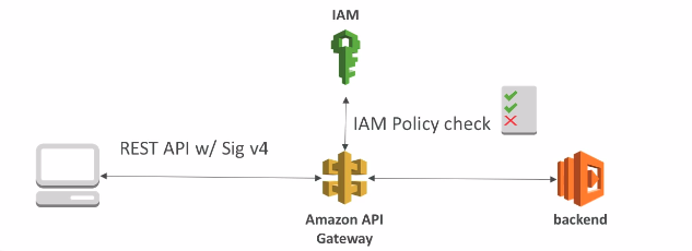 1- IAM Permissions: API'a kullanıcı veya oluşturulan rol ile erişim yapılmaktadır. Bu erişimin kontorlünü de API Gateway yapmaktadır.