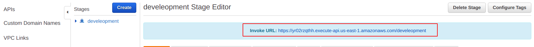 API Gateway'in verdiği URL'de stage ismi de olacak ben development girmiştim./rastgele eklediğim kısım ve sonuç 42 gele gele Konya geldi 😂